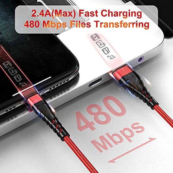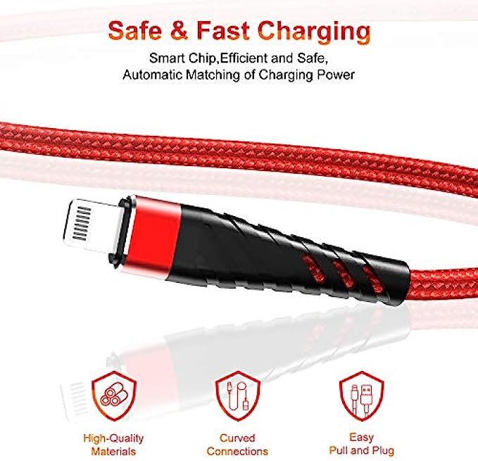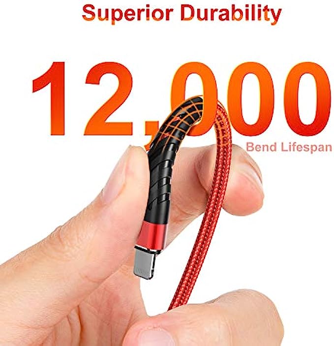 【Reinforced Joint Design】Nylon Braided long iphone charging cord 10 ft with reinforced joint design, cables have been tested to bend 95-degrees 10,000 times, can withstand repeated bending and pulling without breaking.