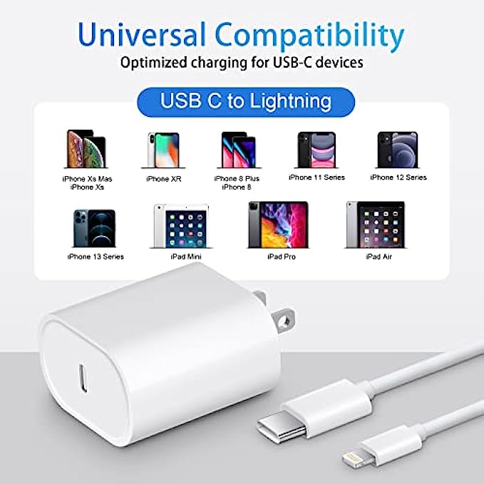 [Universal Compatibility]:20W USB C iPhone Charger Fast Charging for iPhone 13/13Pro Max/12/12 Pro/12 Pro Max/12 Mini/11/11 Pro/11 Pro Max/XR/XS Max/XS/X/8 Plus/8/SE , iPad, AirPods. Standrad Charging Speed works with iPhone 7/7 Plus/6s/6s Plus/6/6 Plus/SE/5s/5/5c.