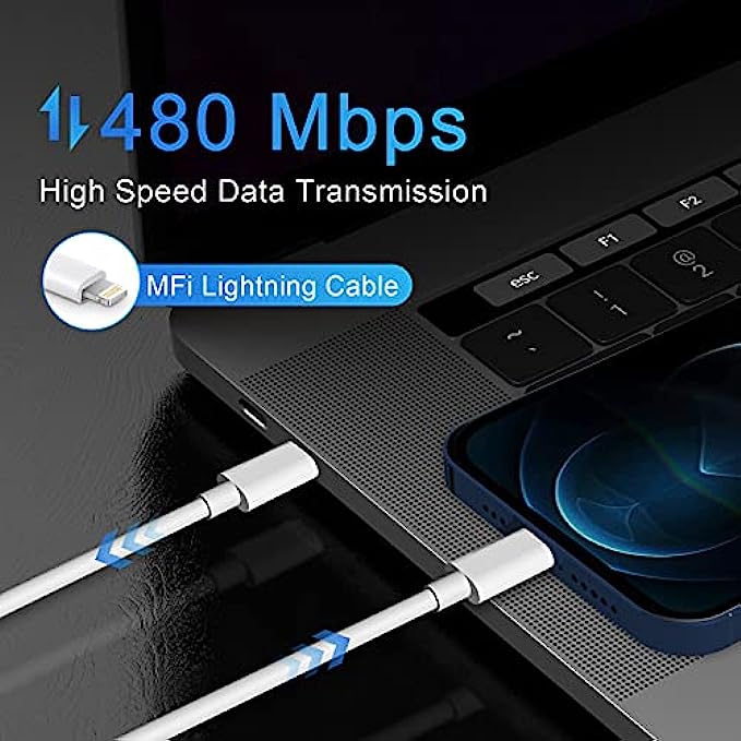 [MFi Certified Lightning Cable]: With the original MFi Chip, Built with latest C94 terminal and smart chip. Apple MFi licensed iPhone charging cable promises no warning message pops up. Ensures 100% high speed charge and you could connect your MacBook/Pro with iPhone/iPad/iPod directly and enjoy the 480 Mbps sync data transfer speed.
