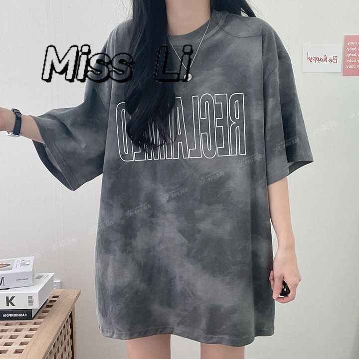 「Miss Li」台灣出貨短袖t恤女 大碼女裝 韓版 寬松 設計感小眾 中長款上衣 oversize 下半身失蹤 女生衣