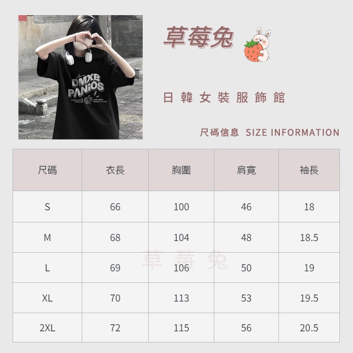 【草莓兔】短袖t恤女 圓領 ins風韓版上衣 夏季短袖 寬鬆 日系簡約 情侶上衣 印花半袖上衣 潮流中長款上衣