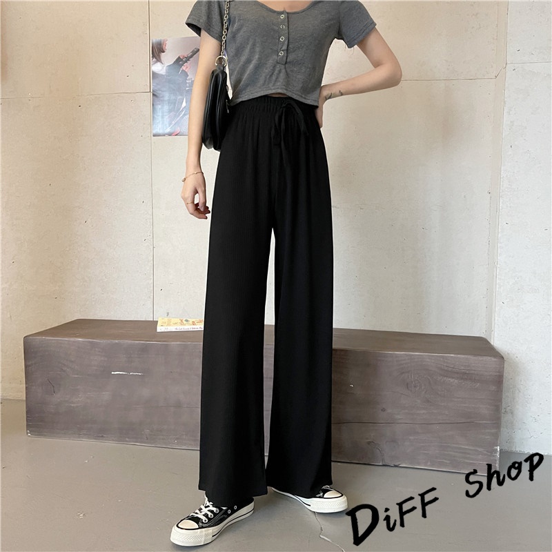 【DIFF】韓版直筒顯瘦高腰休閒寬褲 拖地褲 褲子 長褲 休閒褲 女裝 工裝褲 落地褲【P115】