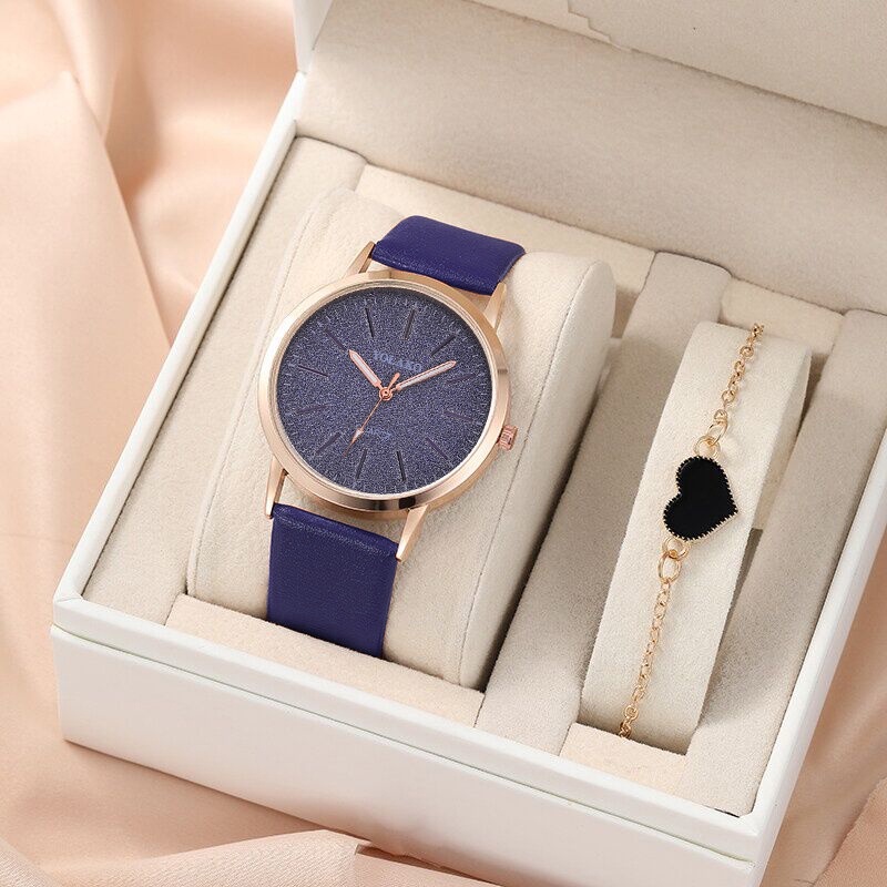 【Watch+Bracelet】Watch Bracelet Set Fashion Starry Sky Leather Strap Women Watches