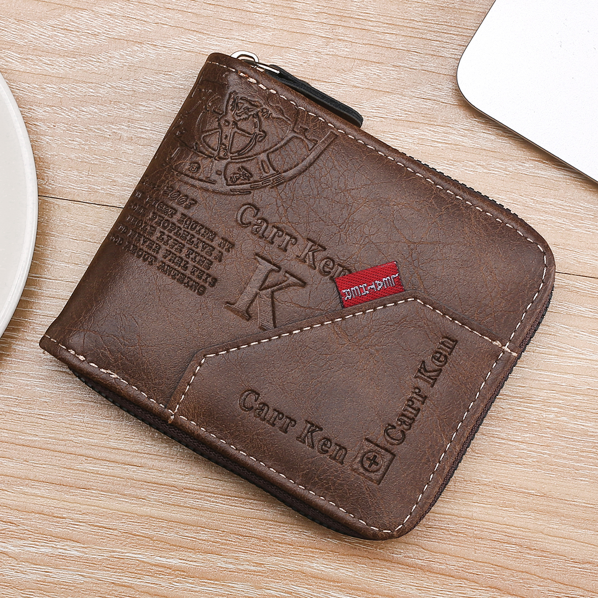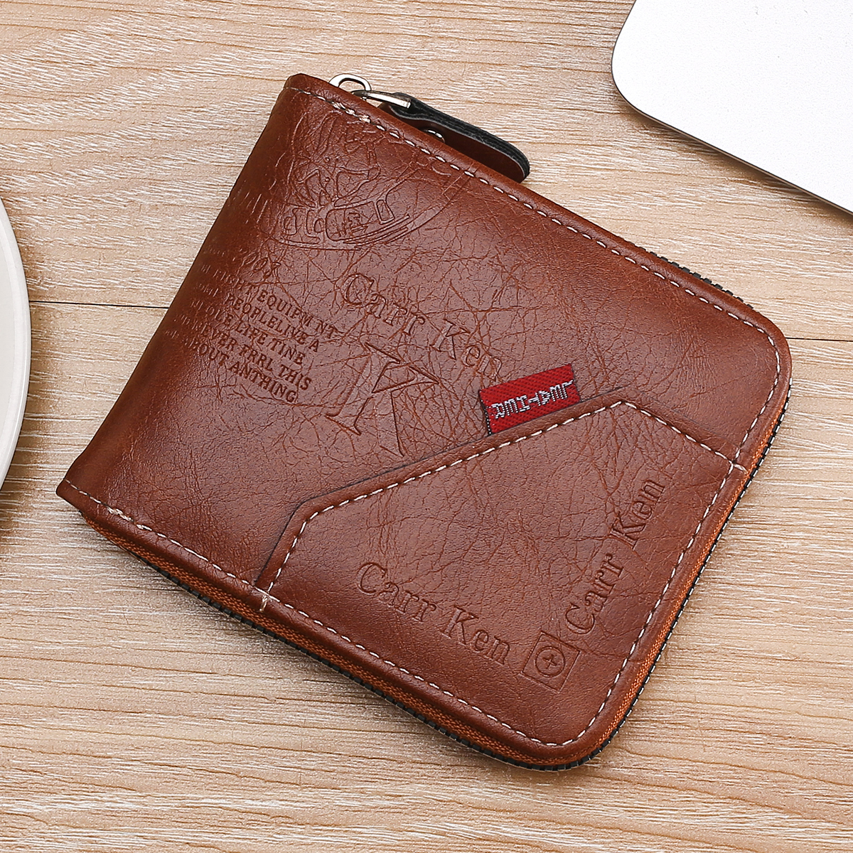 Color: Light brown light brown True to description: true to description Leather material: leather Men's short wallet with zipper, many compartments, fashionable design for men (ah, women are fine :) )