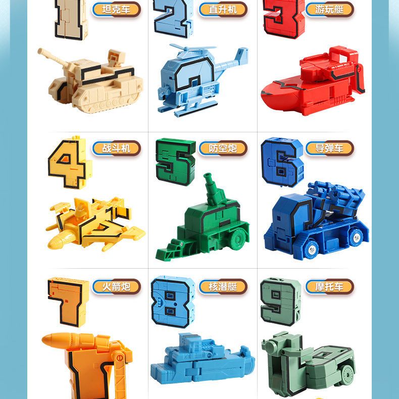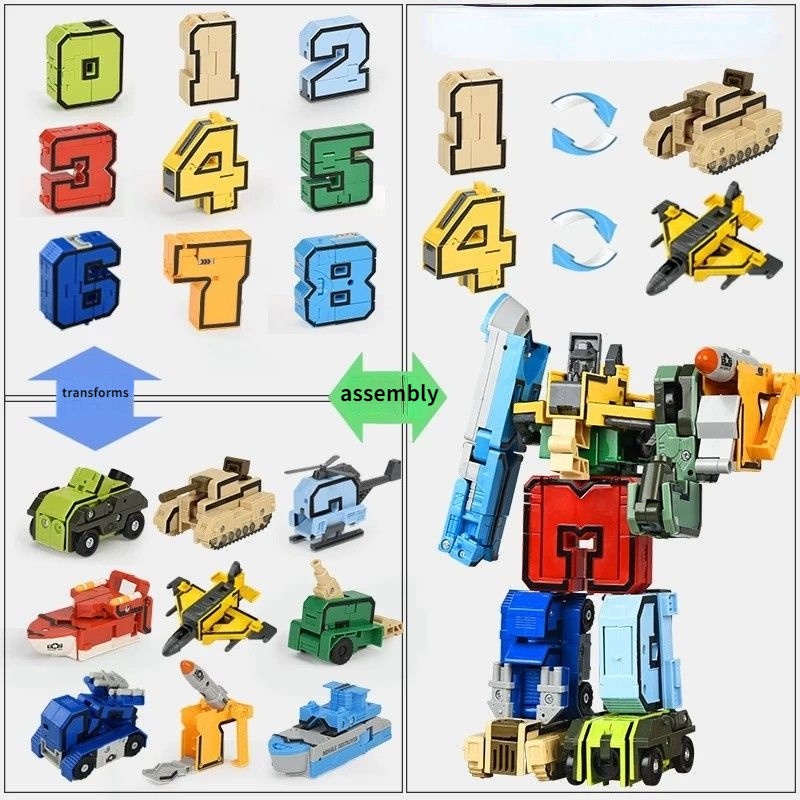 10 Pcs Full Set Number Robot Toy Set DIY Assemble Number Kids Toys Combined Car Robot Tank Boy Toys