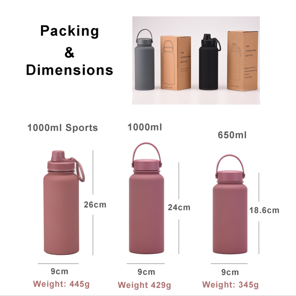 1L Thermal Flask Water Bottle Vacuum Insulated Bottle Stainless Steel Coffee Cup