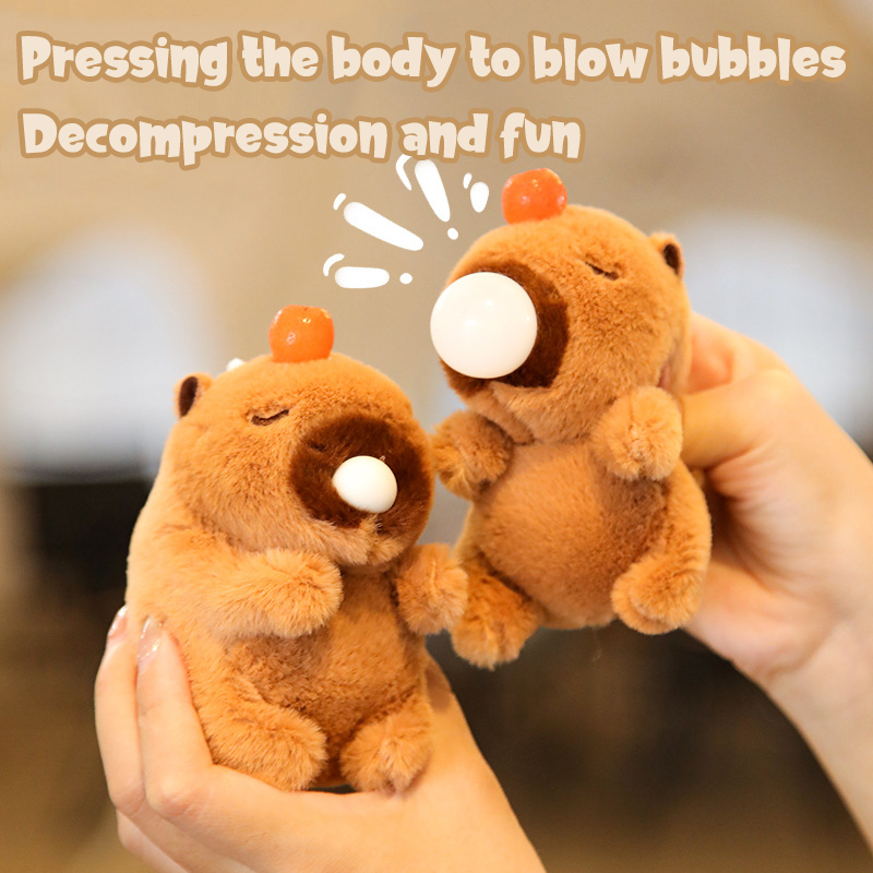 2024 New Product Kapibara Doll Doll Plush Toy Backpack Key Pendant Wagging Tail Blowing Bubble Bracelet Capybara Plush Doll with Music Suitable for Children aged 3-6 Birthday Gifts Holiday Gifts