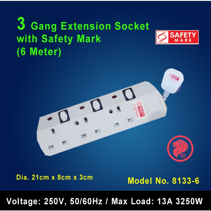 2/3/4/5/6 Gang Extension Socket with Singapore Safety Mark (2, 3 & 6 Meters)