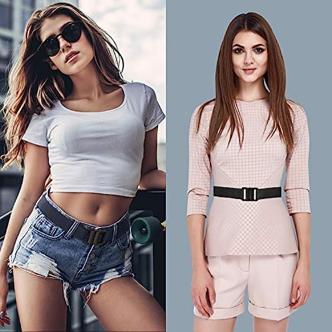 Elastic Snap closure Wet Wipe Clean What you get: you will receive the super easy latching and snapping adjustable stretch belts, the elastic material make the belts lightweight and breathable to wear, snap the plastic clasp to secure and press it to unbuckle, feel like wearing nothing and invisible Flat buckle: the plastic buckle is no show under your outfit or on your waist, does not like the bulky buckle, it provides a slimming appearance for you when keeping clasp tightly, no use of metal is also time-saving for security check Adjustable size: the invisible belt is approx. 100 x 3.5 cm/ 39.37 x 1.38 inches, fit for US size 0-16, , the buckle is 1.37 inch wide, 1.49 inch long; The elastic strap is flexible to adjust, one size fits most, holding up your pants and fit around your waist tightly Invisible design: if you have to wear a web belt but do not want the bulge part of a metal buckle, try this no show belt, flat buckle, no bulge, look smooth under clothes, provides an instant slimming effect, easy to pass metal detector Diverse occasions: the invisible waist belt is suitable for daily wear, travel, outdoor, work, school, to match jeans, dress, T-shirts, also good for those who are pregnant or losing weight, much more comfortable to wear than those hole belts