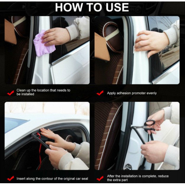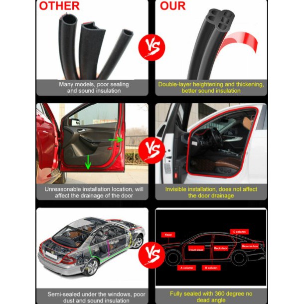 Quality:good quality, soft material Appearance:good Suitability:good Bought 5 sets for my hatchback. Hope enough for the doors, boot & bonnet.