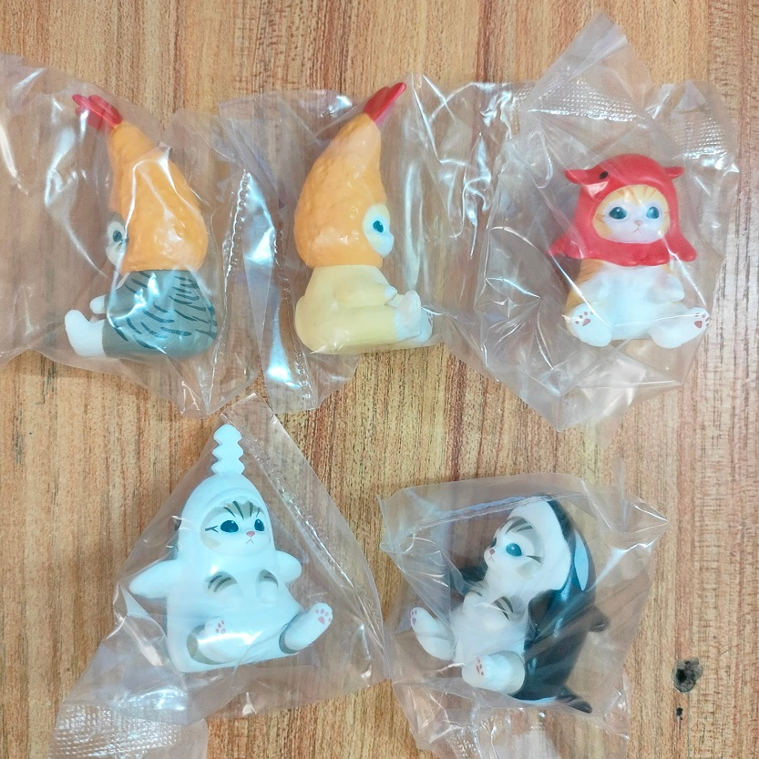 5Pcs/Set Mofusand Kawaii Tempura Fried Shrimp Shark Cat Action Figure Toy PVC Hamburg Cat Model Doll Figurines Home Decoration Fans Children Gifts