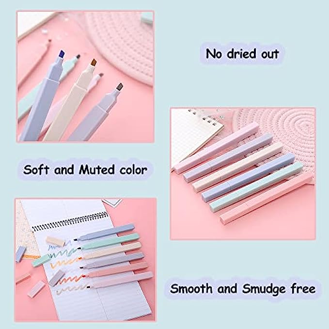 ✍[Smooth and Smudge free Highlighters]Soft and muted color highlighter slide nicely on the pages and don't bleed through and dried out.These stylish highlighters will make your bible verses journal planner more pretty to look at.