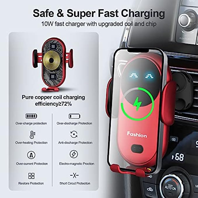 • ?Safety Security: Wireless charger has overcharging protection, overheating protection, short circuit protection and electromagnetic protection.If the device is abnormal, it will automatically stop working, minimize driving hazards on the road.