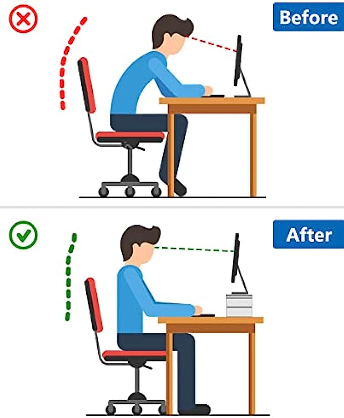 【MAINTAIN A HEALTHY SITTING POSTURE】The most comfortable posture when looking at the computer with your head slightly raised, but the mismatch between the height of the chair and the table bothers us. This desktop monitor riser can lift a monitor up to 5.5 inches, allowing you to get the best viewing angle. The computer monitor stand can not only improve work efficiency, but also relieve neck and back pain.