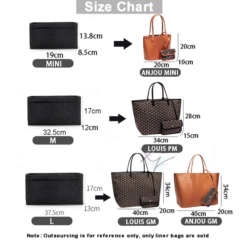 Felt Insert Bag Organizer Fits For Goyard GM PM Mini Tote Womens Handbag Inner Purse Travel Cosmetic Liner Bags Shaper