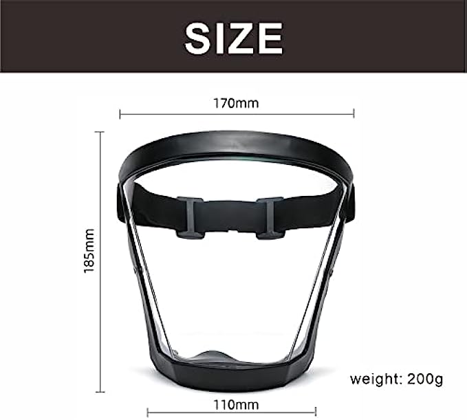 [SUPER CLEAR ANTI-FOG MATERIAL]: Facial protection equipment with anti-fog material, can resist fog after your long-term use. 100% transparent material allows you to see the whole face, convenient for daily communication with people.