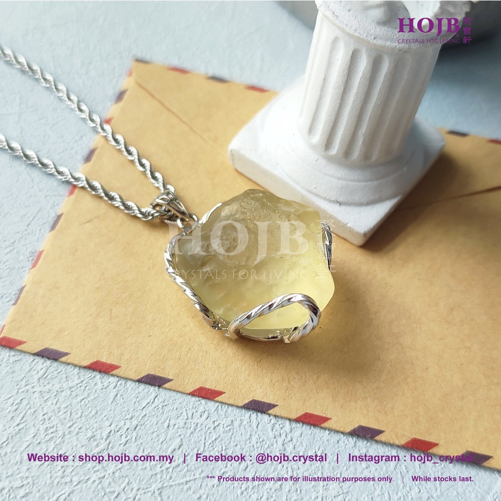 HOJB Authentic Libyan Desert Tektite Rough Stone S925 Pendant 25x32mm (17.1G) Jubaoxuan Pure Meteorite (Gold Meteorite) S925 Silver 25x32mm (17.1G)