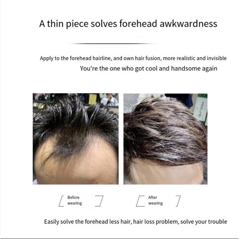 Hairline Wig Sticker Men s Forehead Wig Thin Liu Hai Invisible Real Hair Wig Male Supplement M Type Fake Liu Hai