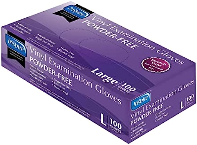 Inspire Stretch Vinyl Exam Gloves | THE ORIGINAL Quality Vinyl Gloves Disposable Latex Free Medical Gloves Cleaning Gloves