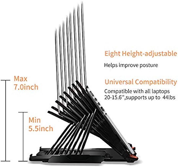 Durable - Made of lightweight ABS with non-slip rubber surface pads to keep laptop in place, strong and reliable, not easy to fade. Compatible with all laptops 10-15.6”, durable enough to support up to 44 lbs (20kg).