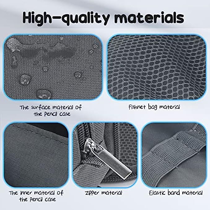 【Large-capacity storage space for neat storage】- The pencil bag is a 9*2.4*4.7 (inch) cuboid, which can accommodate 30-45 gel pens. The large-capacity area in the middle can accommodate large stationery such as calculators, and 2 layers of space can accommodate markers or other stationery. And the inner structure is designed with net pockets and sticky note bag, It can accommodate scissors, erasers, compasses, etc. The capacity of the pencil bag can fully meet the daily storage needs.