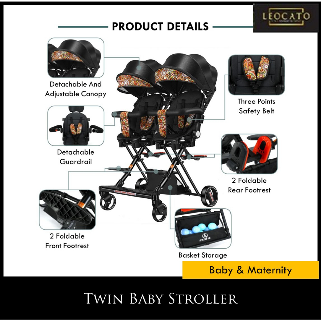 Lightweight Twin Baby Stroller Foldable Twin Baby Stroller