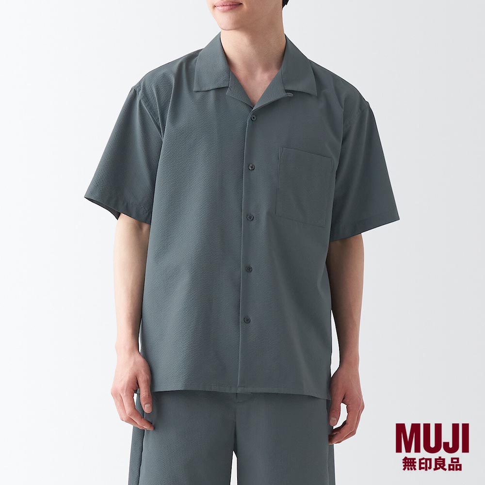 MUJI Men Seersucker Open Collar S/S Shirt