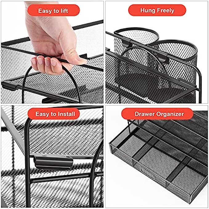 【Space Saving】 Outfit your space with the Hanging Pencil Holder (Built-in Hooks) and the top drawer organizer, which offers everything you need to keep your desk neat so you can stay on-task and do great work.