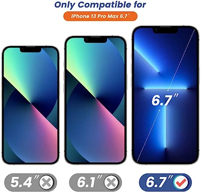 • Instruction of Install for iPhone 13 Pro Max Tempered Glass:Super Easy to Install the 6.7" Glass Screen Protector with an Installation Guidance Frame to Assist with the Application Process.