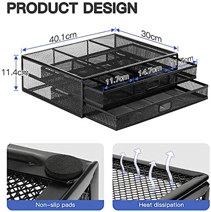 【Super Desk Organizer with 2 Drawers】- Store almost all of your small office supplies like pens, notebooks, smart phones, paper, documents etc., keeping your desk neat and tidy. A superb way to save space and decrease clutter