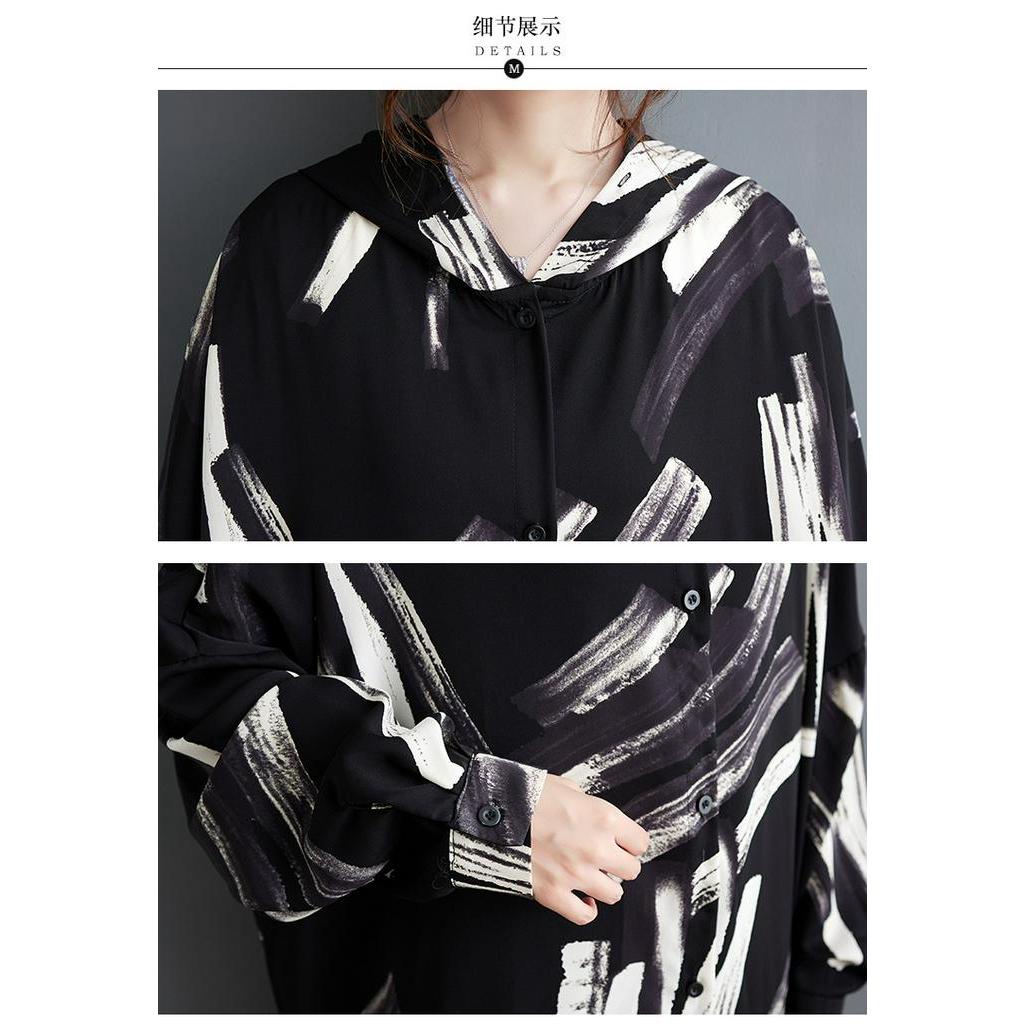 Oladivi Fashion Print Long Sleeve Button Dress for Women 2023 Spring Autumn Casual Loose Midi Dresses Oversized Clothing Plus Size Tunic Robe 5869 JM004