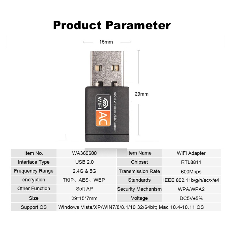 Roni USB Wireless Wifi Adapter 600Mbps Wifi Dongle Dual Band 2.4G / 5G Hz 802.11 AC SG SELLER(In stock)
