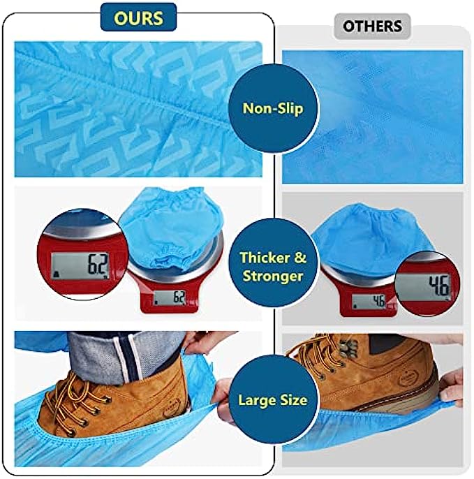 High Quality: Made of 6.2g high quality non-woven material, which makes the shoe cover thicker, stronger and more durable, more breathable, no odor, anti-static, noise reduction.Our protective booties will protect homes, carpets hardwood floors surface and more!