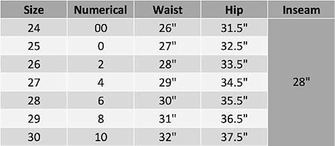 • SIZE: 24=00, 25=0, 26=2, 27=4, 28=6, 29=8, 30=10.