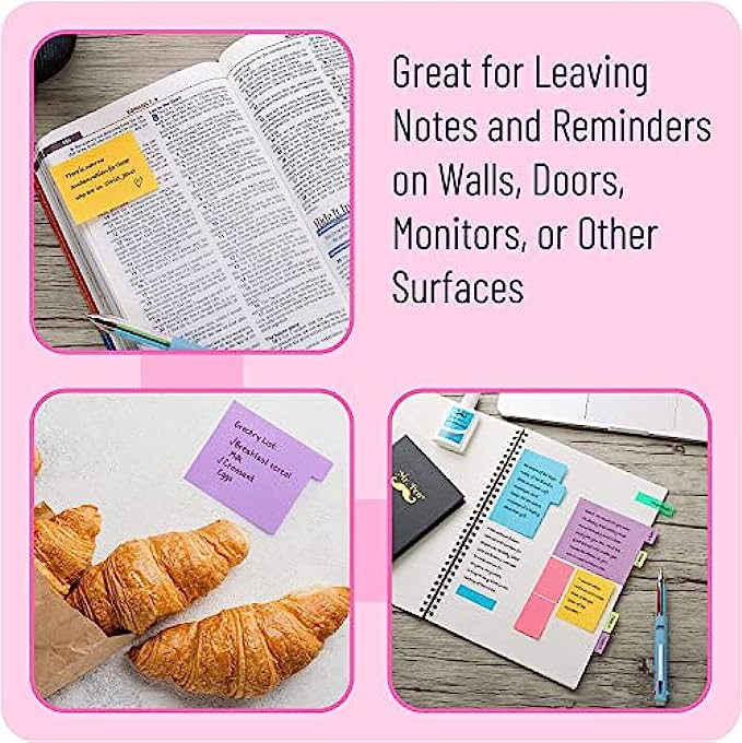 【Adhesives & Remove】The stick notes tabs are sticky, perfectly pasted on paper, walls, displays, bulletin boards,Removable you can take them off without ripping the paper.