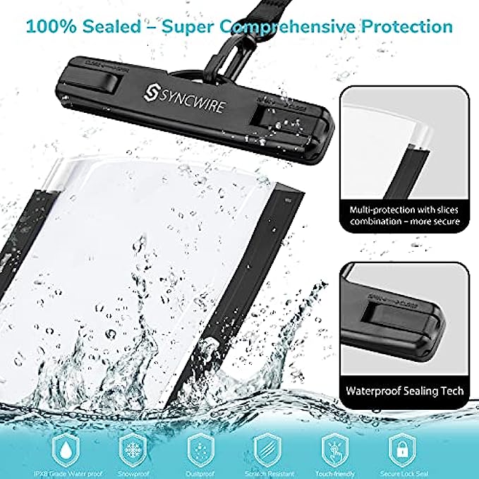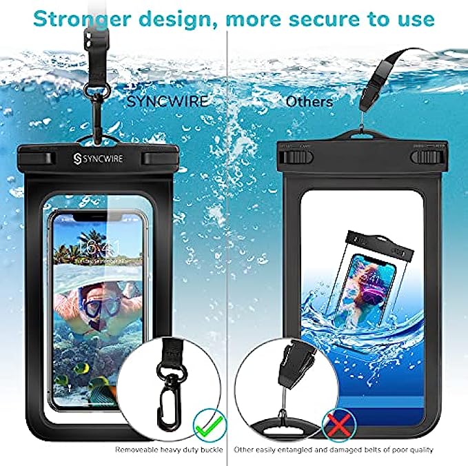 • ?[Wide Compatibility]: Syncwire dry bag is suitable for almost all cell phones up to 7 inches, such as iPhone 13/12/11 iPhone 13/12/11 Pro iPhone 13/12/11 Pro Max iPhone XS Max XR XS X 8 7 8P 7P 6s plus 6 plus se, Samsung Galaxy S22 S21 S10 S9, Google Pixel 6, etc. User-friendly design equips Syncwire waterproof phone case extra space for your card and cash, one case for all while no more wallet needed.