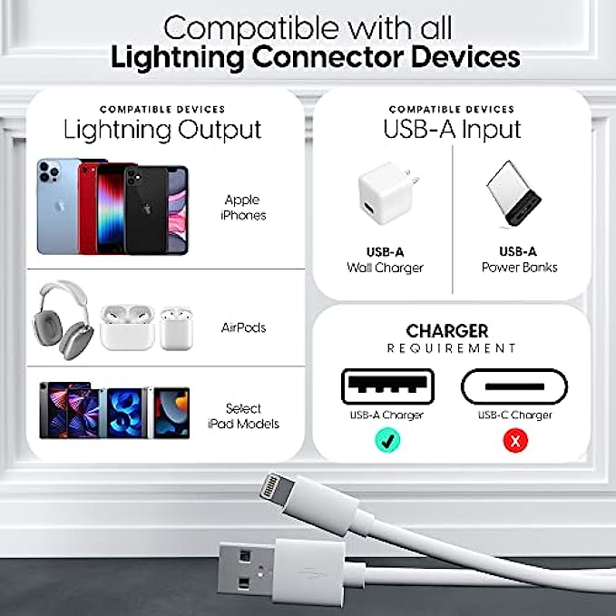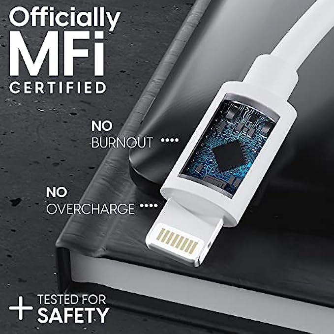 MFI (Made for iPhone / iPad / iPod) Certified lightning cable is designed for Apple chargers and approved for Apple MFI Certification to ensure your devices are safe from overheating or short circuiting