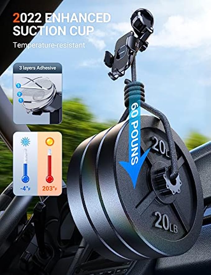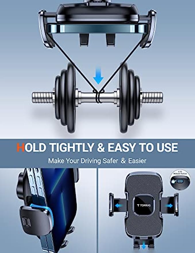 • ▶[MILITARY GRADE STURDINESS TEST]: The 2022 enhanced TORRAS cell phone holder for car passed the military-grade sturdiness test! Absolutely sturdier 20 x than normal ones! The suction cup can withstand the temperature from -20℃(-4°F) to 95℃/(203°F), also be reusable! You can stick it on your car dash or windshield. Also, you can get a sticky pad to protect your car dash. Completely friendly, hands-free and views-adjustable!