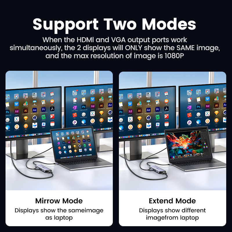 UGREEN 10 IN 1 Hub USB C Hub HDMI VGA Adapter 4k 30Hz USB C to USB 3.0 100W Fast Charging Dock For Macbook Pro Support SD TF Card and 1000Mbps RJ45 Port
