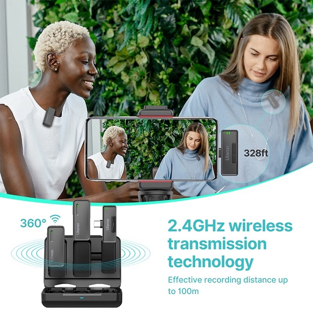 ULANZI UW-MIC 2.4GHz Wireless Microphone Dual Lavalier Mic for Smartphone