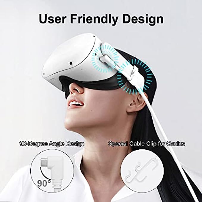 【Enhance Gaming Experience】90-degree L-shape usb c head design makes it more stable connect to VR headset and not easily damaged. We provide a special cable clip for fixes the cable and prevent disconnection during movement, never worry the cable block your face again. Providing perfect PC VR experience.