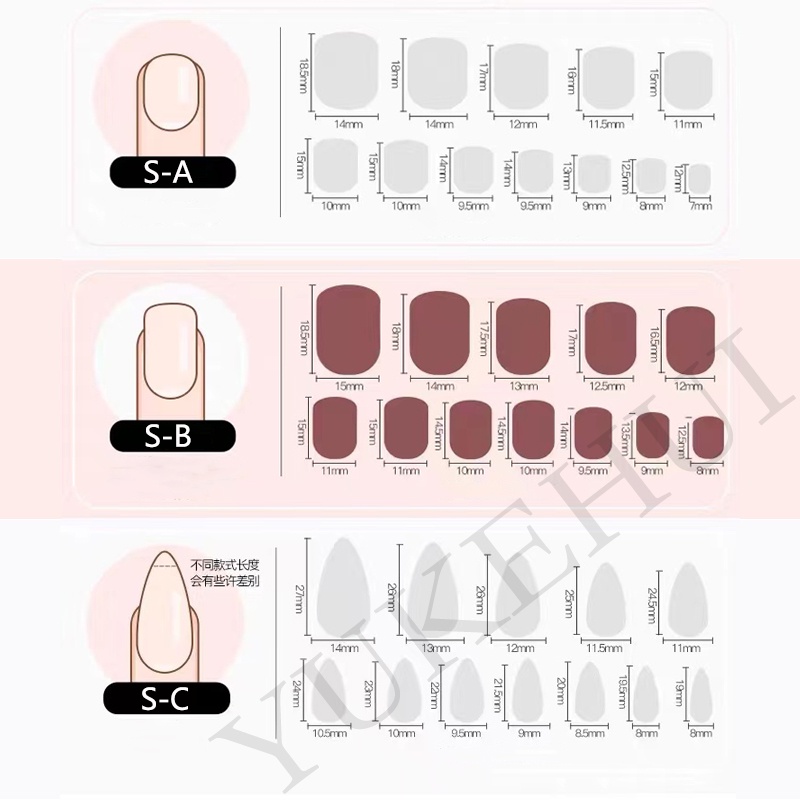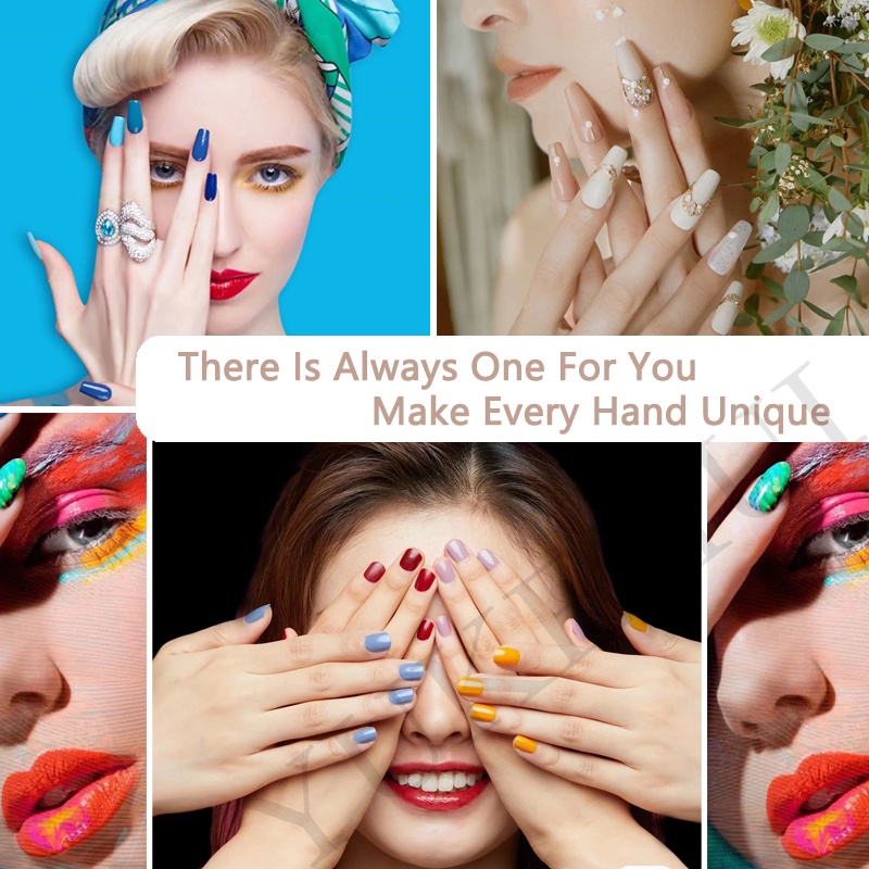 YKHMYB 24 pcs set with glue nails fake nails nail sticker long nail glue art false nails french nail fake nails with design manicure press on nails 假指甲 指甲貼 fake nails press on short nail nail press o