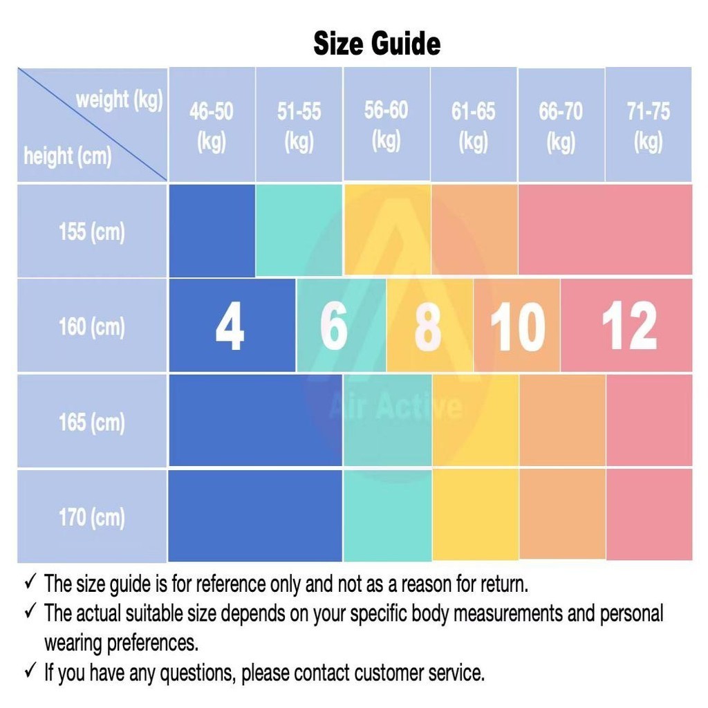 Quality:amazing quality Appearance:very nice colour, makes me look slim 161cm, 52kg and size 6 fits snug. I’m a usual waist 13-13.5” and I think both sizes 6/8 would fit, just a matter of preference. Will be getting in another colour. Material is not too thin and not too thick, good with seamless panties and works for SG weather.
