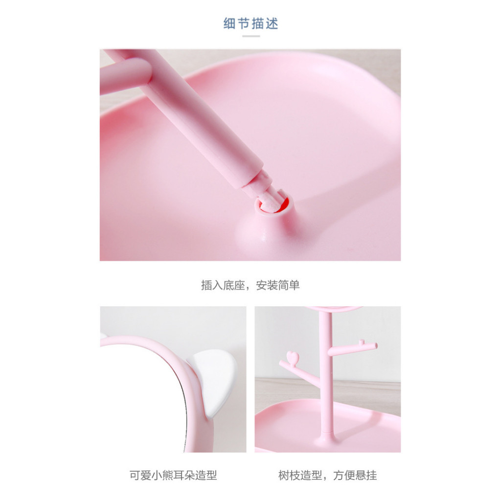 It works as a mirror should with branches to hang accessories. Very cute design and useful. At ten cents not including delivery fee yet it is a steal!