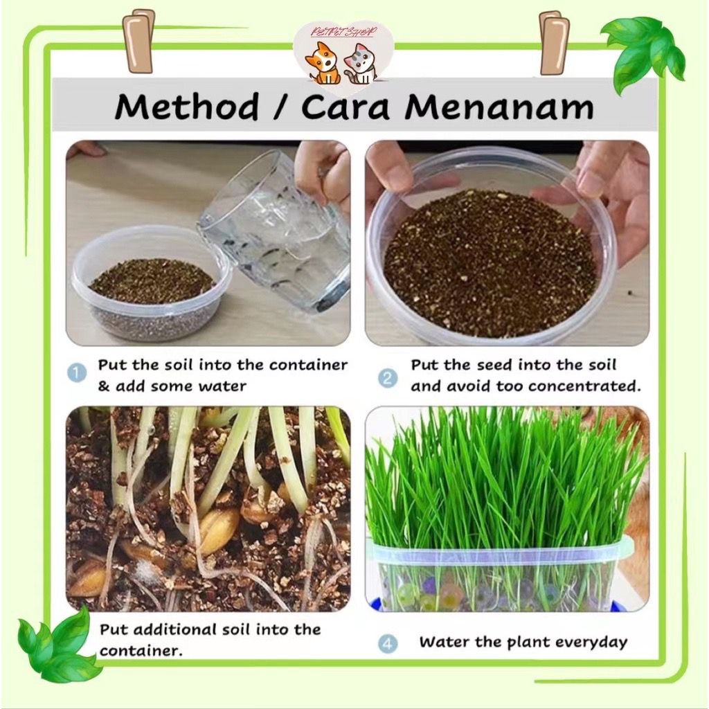 Suitability:good Quality:good Performance:good Delivery is quite fast. Hopefully Im able to grow the cat grass ? previously non-soil cat grass keeps growing mold. Trying out the soil method