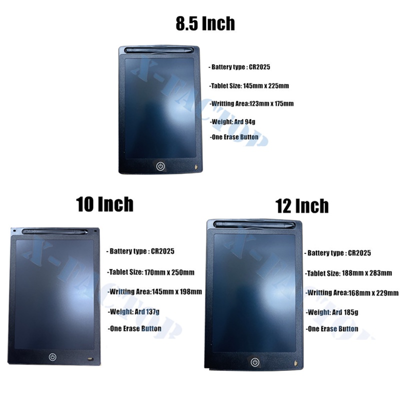 Free Extra Battery & Pen String-Ultra Thin 8.5 / 10 /12 /16 Inch Drawing Tablet / LCD Writing Tablet / Kid Writing Pad