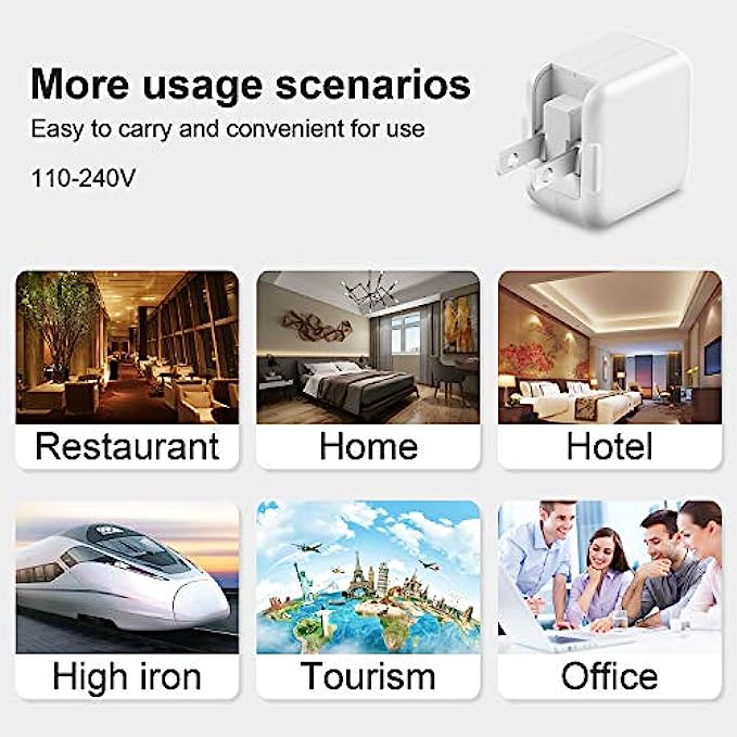 • 【USB Fast Charger for iPad iPhone】- iPad iPhone Charger equipped with 12W USB power delivery wall plug, Quick-Charge USB port provides Max 12W output power, charge your device up to 2.5x faster than original 5W charger, charging your iPhone up to 50% in just 45 minutes, saving over 1hrs for you.