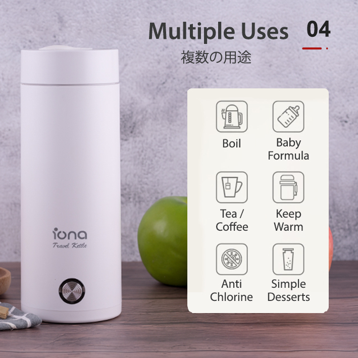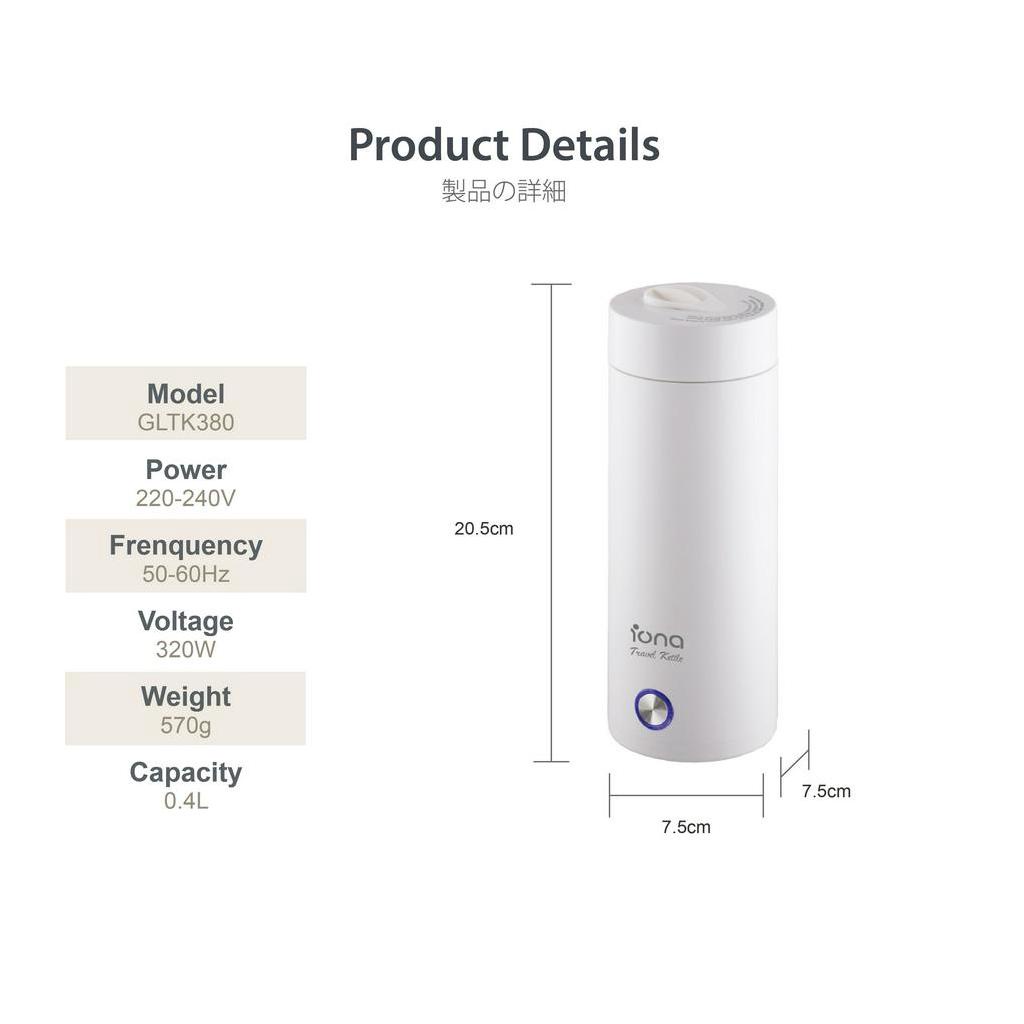 IONA 400ML Mini Travel Kettle | Portable Electric Stainless Steel Small Kettle - GLTK380