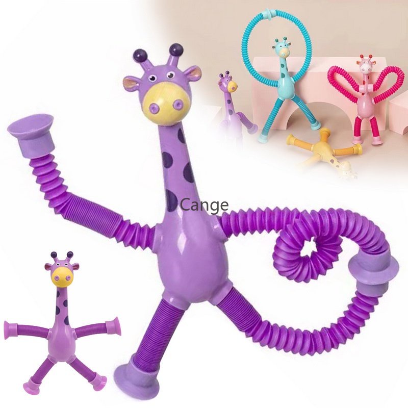 LED Telescopic Suction Cup Giraffe Toy Cartoon Puzzle Suction Cup Parent-Child Interactive Decompression Toy Stress Relief