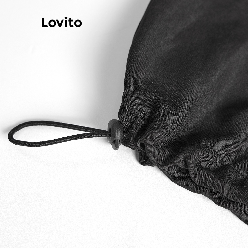 Lovito Casual Plain Pocket Lace Up Pants for Women L68ED106 (Pink/Black)